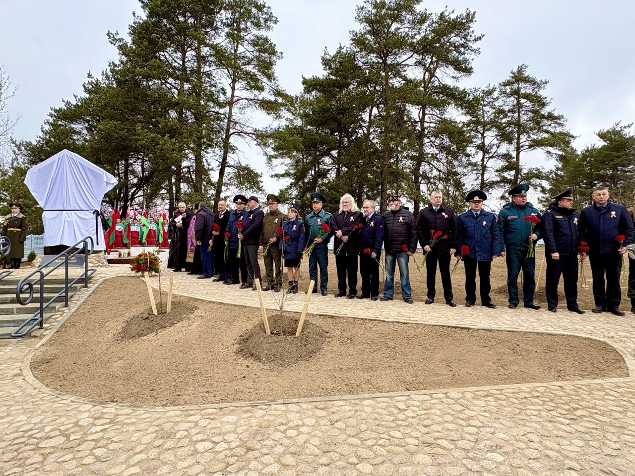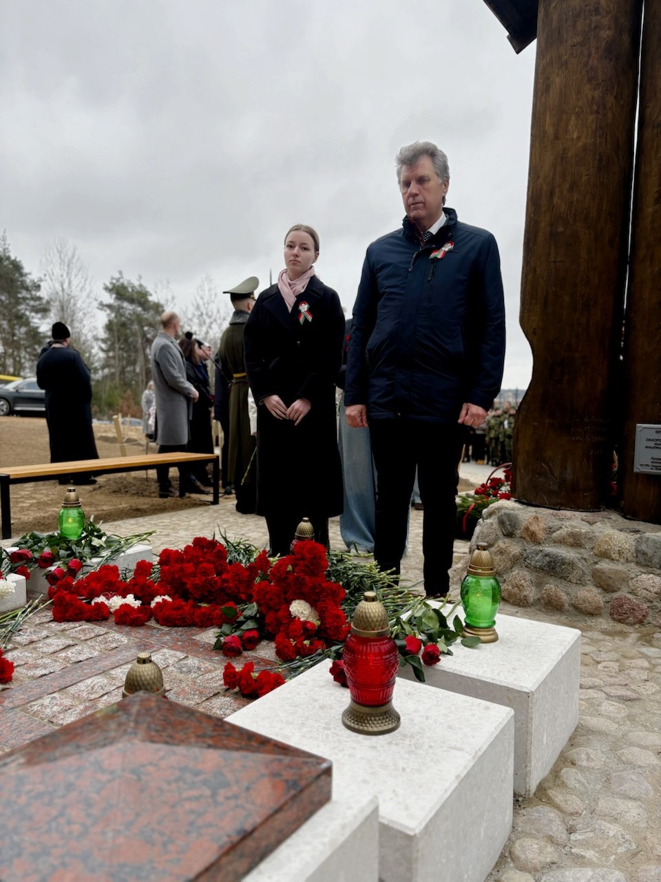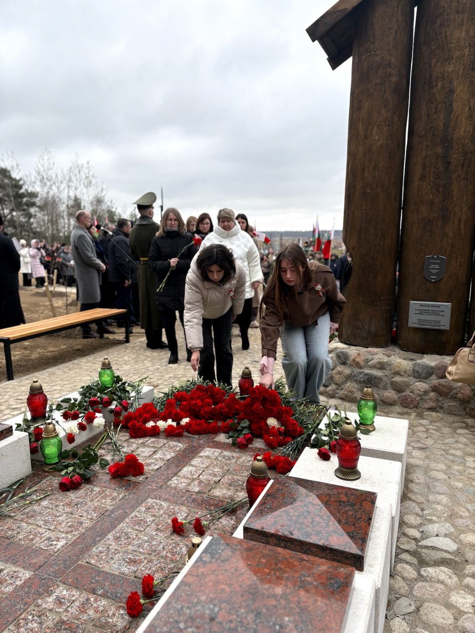 Работники нашего института вместе с другими участниками мероприятия возложили цветы к подножию памятника, отдавая дань уважения и памяти жертвам войны.