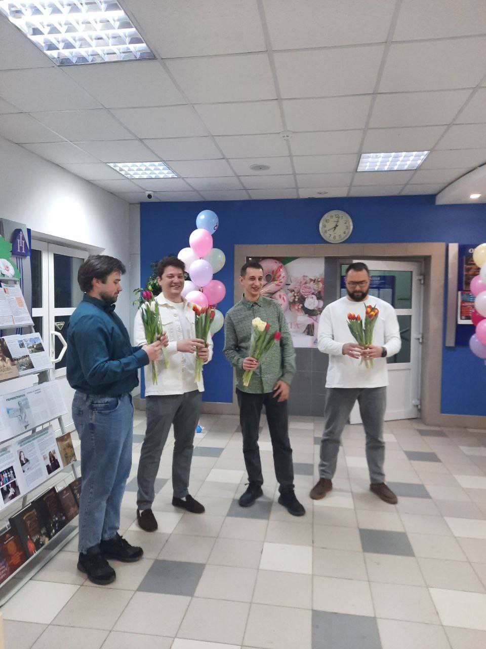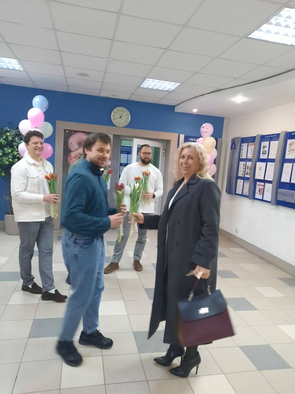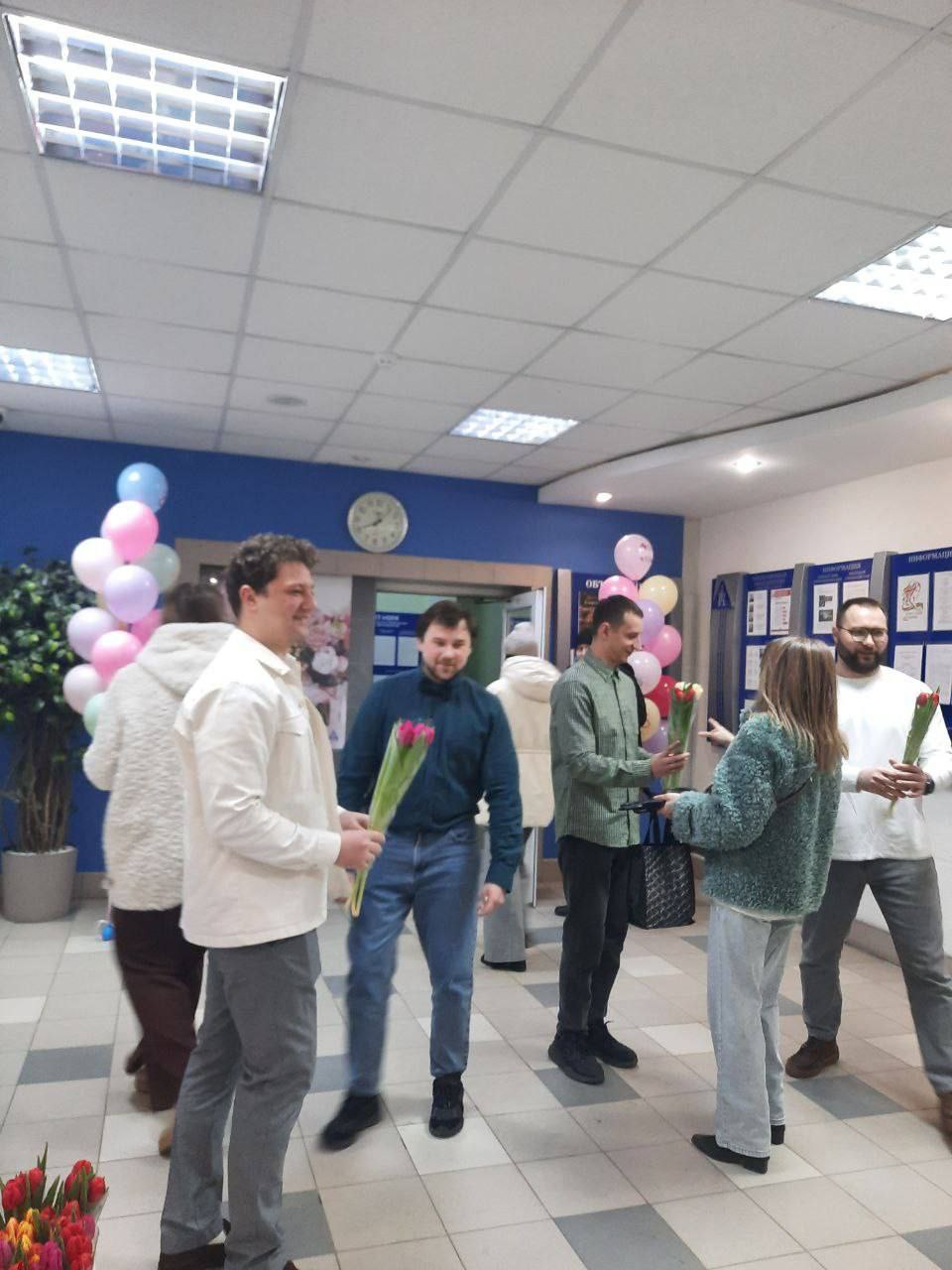 Сегодня в фойе института наших девушек и женщин ждал сюрприз. Мужчины-коллеги встречали каждую с нежными тюльпанами, теплыми комплиментами и искренними поздравлениями.