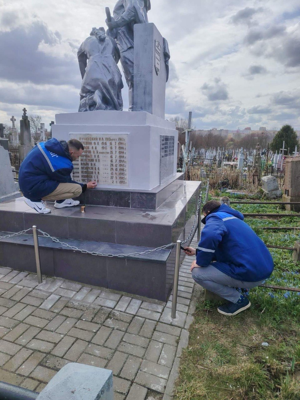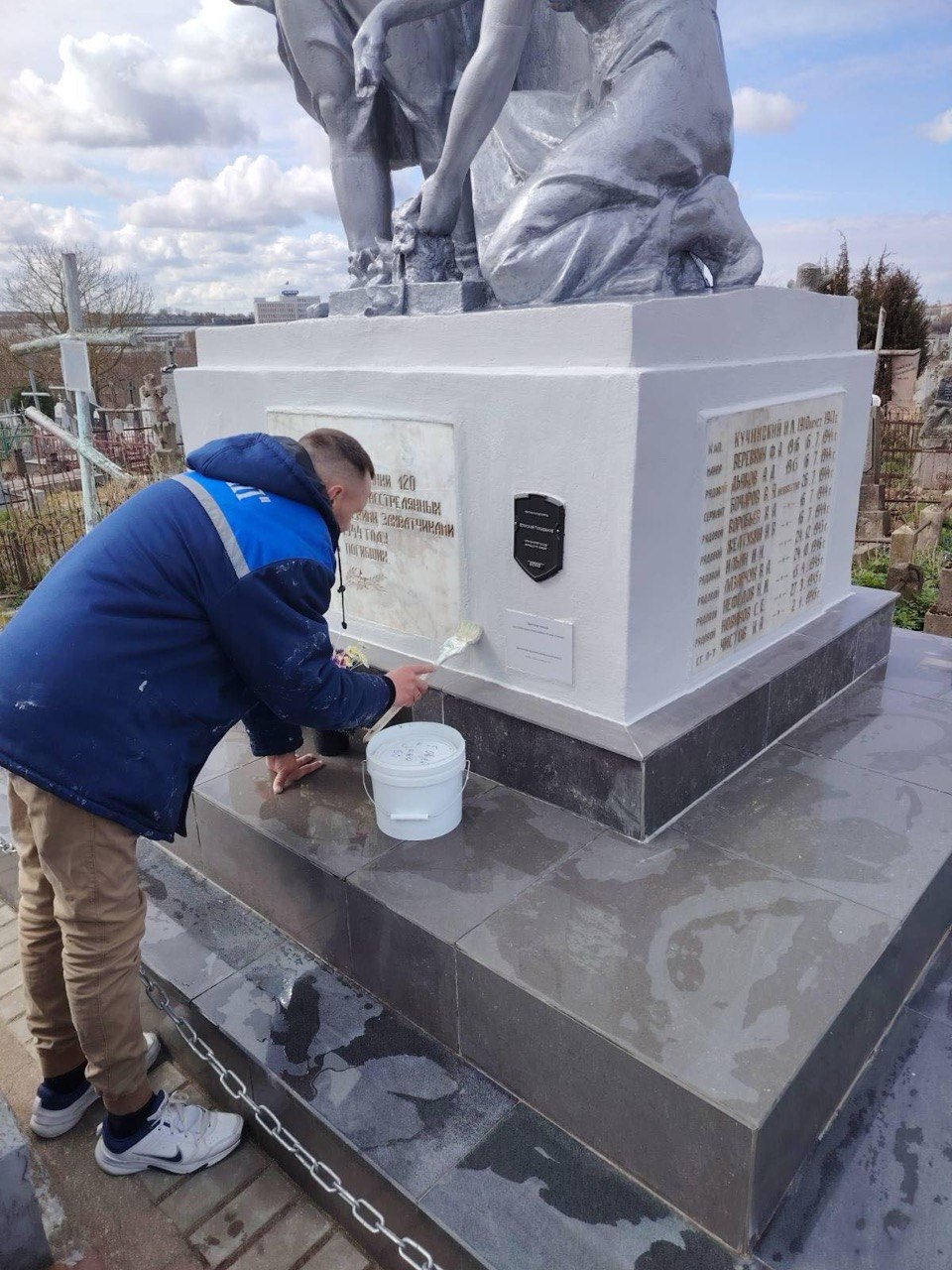 Сотрудники нашего института завершают благоустройство братской могилы советских воинов, расстрелянных в 1944 году (кладбище по ул. Антонова). Идёт ремонт пьедестала и уборка территории.