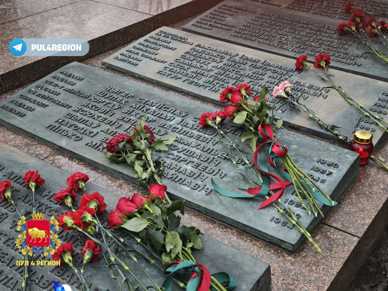 Участники почтили память земляков, не вернувшихся с «локальных войн» и военных конфликтов. К подножию монумента легли живые цветы и венки.